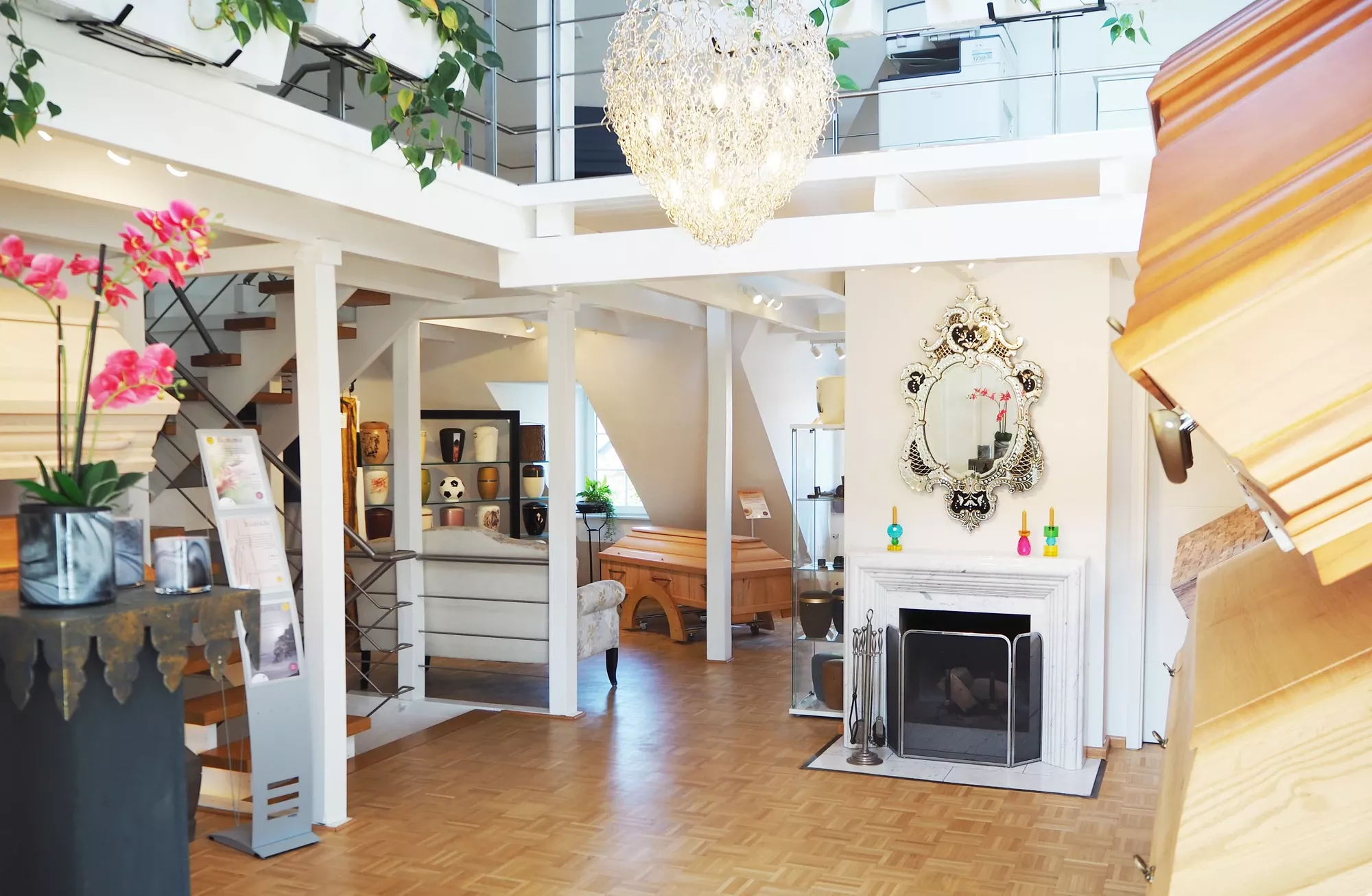Wir empfangen Sie in unseren modern eingerichteten Räumlichkeiten. In privater Atmosphäre können wir ungestört und in Ruhe über alle Einzelheiten zur Trauerfeier und Bestattung sprechen.